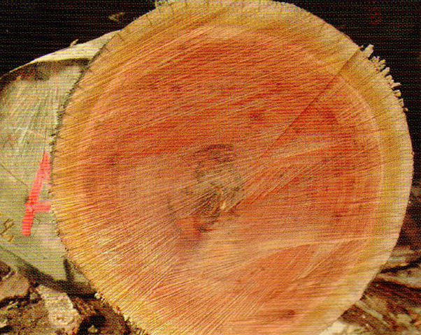 心邊材區(qū)別明品、心材新切面玫瑰紅色,久則我紅褐色。邊材灰黃褐色,寬3~6cm。生長(zhǎng)輪不明景。
